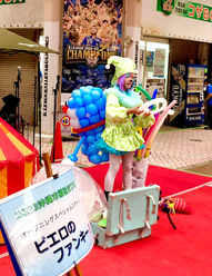 “セルフ全部乗せピエロ”。アートバルーン職人でもあり、ステージの魔法使いです。